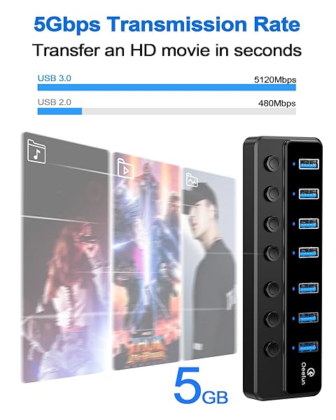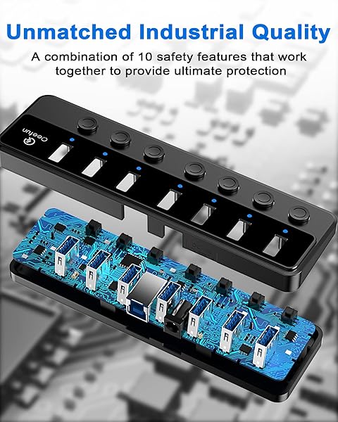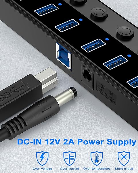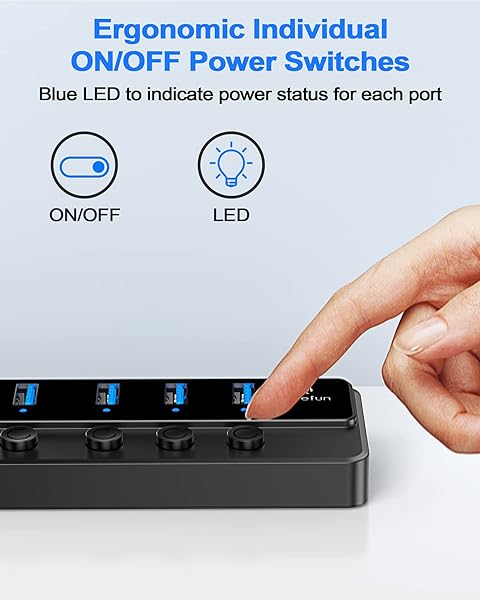 - Qeefun Powered USB Hub, 7-Port USB 3.0 Data Extender with Individual LED On/Off Switches and 12V/2A Power Support Port, USB Splitter Expander for Laptop, Desktop PC, iMac and More offers reliable performance and quality
