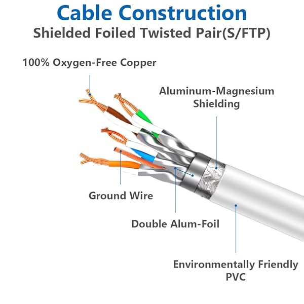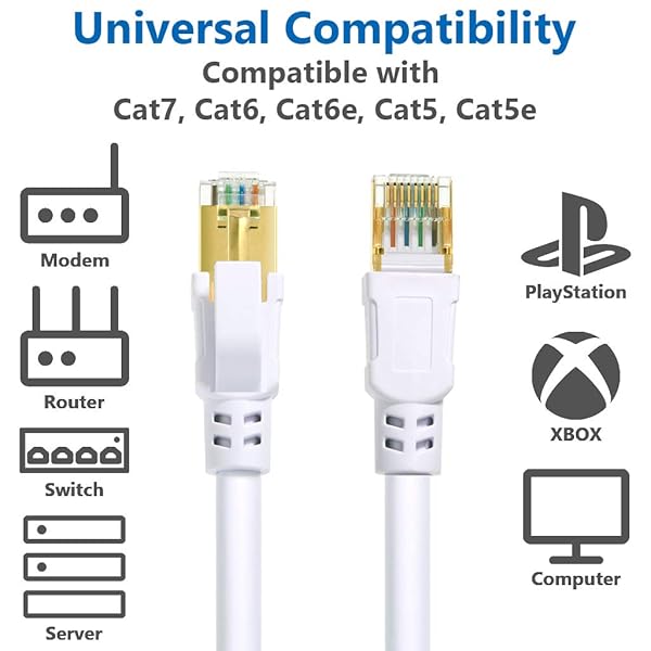 * QIFGUO Cat 8 Ethernet Cable 65ft Internet Network LAN Patch Cable Cord Shielded High Speed 40Gbps 2000Mhz RJ45 Cables for Gaming, Router, PS4, Xbox - Compatible with Cat7/Cat6a/Cat5e Network - White: hyper speed & more practicality * Cat8 ethernet cable supports bandwidth up to 2000MHz and up to 40Gbps data transmitting speed * Give you a better surfing experience * Also bundled with 60 cable clips and 2 cable straps for free * S/FTP & 100% Copper