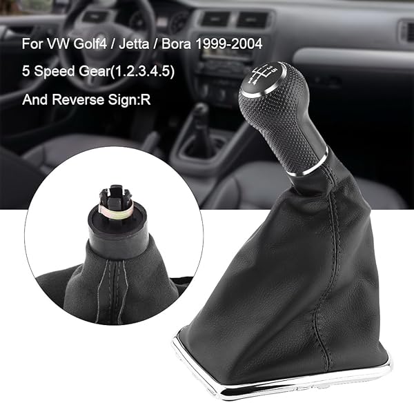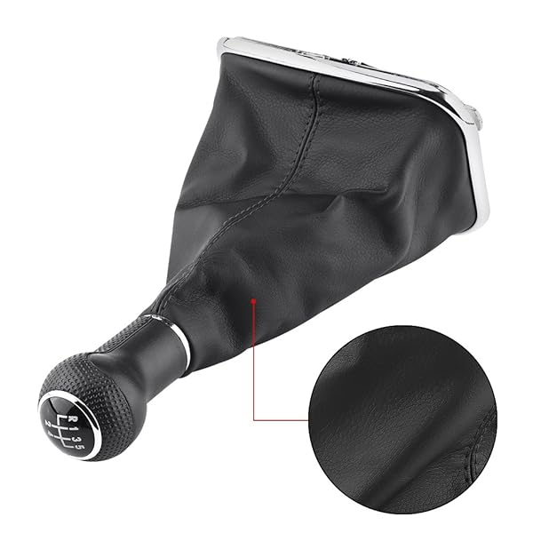 * Qiilu 5 Speed Car Gear Shift Knob Gearstick Gaiter Boot Manual Shift Boot Kit for 1999-2004: features * 5 speed gear knob & gaiter full kit including gear shift knob * Gaiter cover * Frame.Speed chrome plated with black * Beautiful and elegant