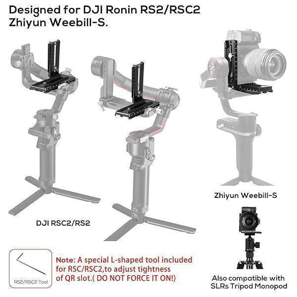 - EaxanPic Aluminum L Bracket Vertical Horizontal Switching Quick Release Plate for DJI Ronin RS2 RSC2 Zhiyun Weebill-S Gimbal Stabilizer Tripod Monopod and SLRs provides reliable performance and qua...- VERTICAL & HORIZONTAL SHOOTINGThis L Quick Release Plate help you switch from vertical to horizontal shooting quickly and designed for DJI Ronin RS2 RSC2 Zhiyun Weebill-S,also compatible with SLRs ...