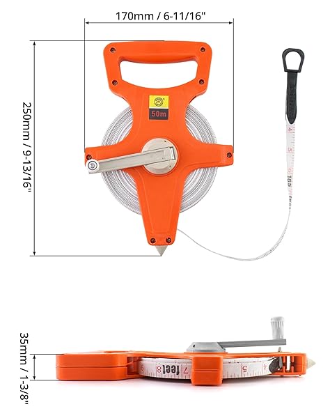 - QWORK 1/2" x 164' Fiberglass Tape Measure, 4 Pack Engineer's Open Reel Dual Sided Measure, Orange with reliable performance and quality- High Quality - Made of premium fiberglass, this tape measure is soft, durable, water resistant.- Ergonomic Handle - With our ergonomic handle, you can grip this tape for a long time working and will not feel tired.- Double Side - Our 164 foot tape measure can be double used. One side is inches/feet, another side is metric. The width