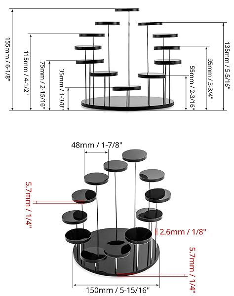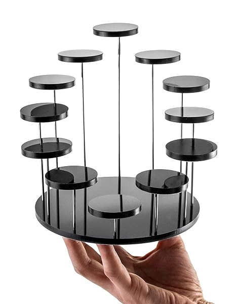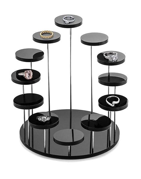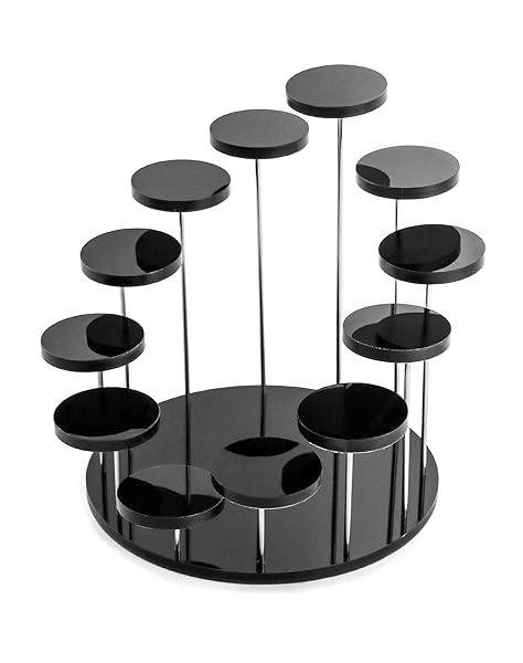 * QWORK Round Acrylic Products Display Riser Stands, 12 Tier Jewelry Display Stands for Rings Earrings,Mini Figurines, Black: size: total of 12 tier * The display tray is 1.8 inches in diameter * The ottom tray is 6inches in diameter * Suitable for Mini figurines * Usage: Designed for showing jewelry