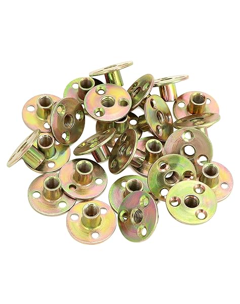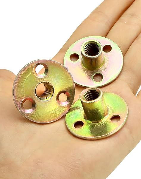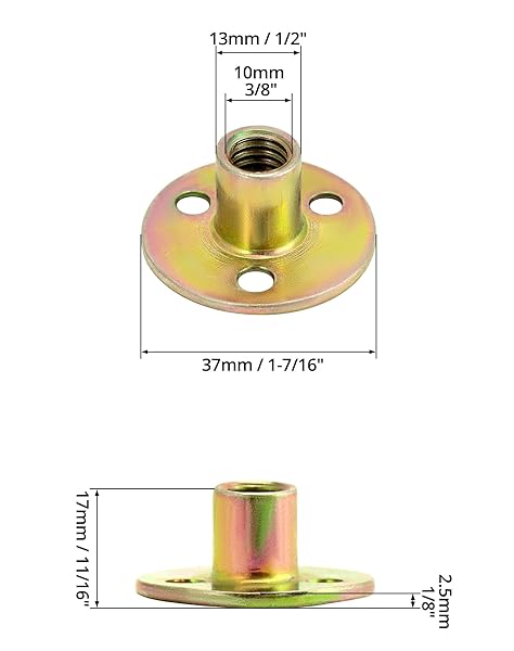 - QWORK 3/8"-16 Iron Plate Nut, 25-Piece Set T-nut with Round Base Carbon Steel T-Nuts, Furniture Hardware Flange Insert Female Thread T-Nut with reliable performance and quality- Specifications: 0.67 inches H x 1.42 inches Base D; Thickness of round base: 2.5mm / 0.1 inches; Internal thread diameter: 3/8 "-16; Mounting hole diameter: 6mm / 0.24 inches; Drilling diameter : 12mm / 0.47 inches.- Durable Construction: Made of high-quality carbon steel and nickel-plated, corrosio
