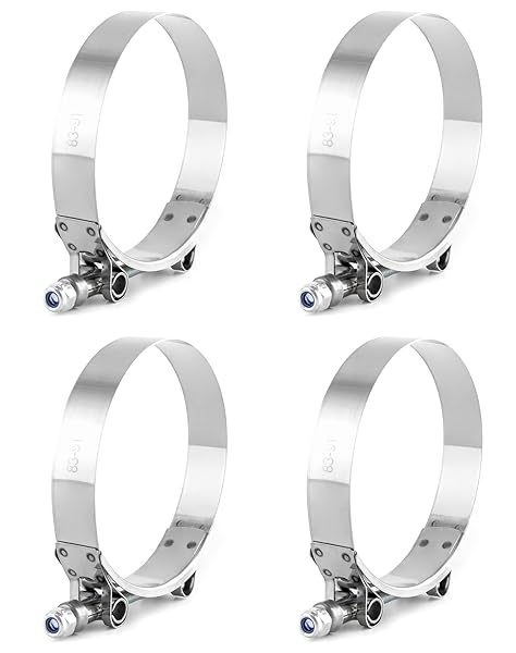 * QWORK 3" T-Bolt Hose Clamp Stainless Steel, Working Range 83mm-91mm for 3" Hose ID, Turbo Intake Intercooler Clamp, 4 Pack: durable: made of premium 304 stainless steel * The T-bolt clamp is anti-rust * Anti-corrosion * Durable to use * T Clamp Range: 3.27"-3.58" (83mm-91mm)
