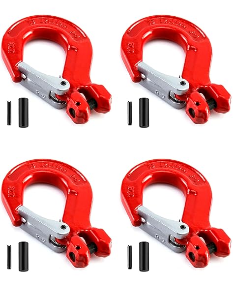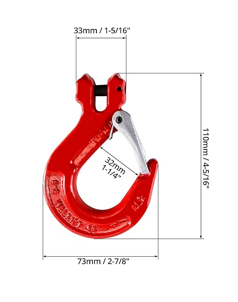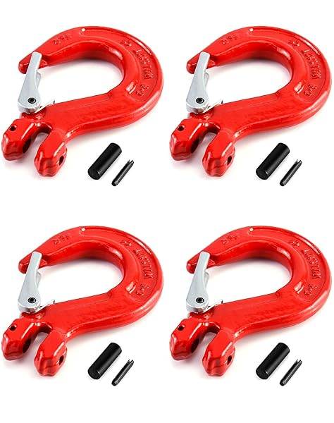 - QWORK Clevis Slip Hook with Latch, 4 Pack, 5/16", 2470 lbs Load Limit, Grade 80 Drop Forged Alloy Steel with reliable performance and quality- Working Load Limit: 2470 lbs. 4 Pack.- Fit: Designed to work with 5/16" safety chains or transport binder chain. This fits securely on the end of a chain and can be hooked over a carabiner for easy attachment.- Material: Made of Grade 80 Drop Forged Alloy Steel, sturdy construction, not easy to break, and durable to use.<