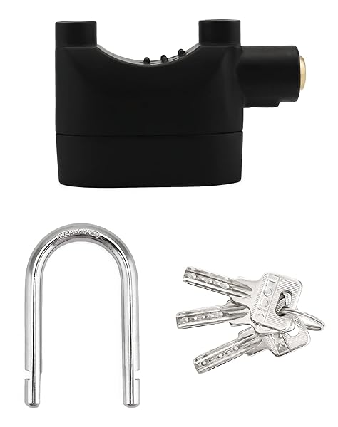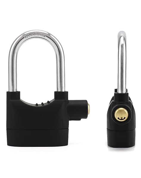 - QWORK Alarm Lock, 110 dB Anti-Theft Security Padlock, 2 Pack Door Motorcycle Bicycle Padlock, Universal Security Siren Alarm Lock with 3 Keys (Black) with reliable performance and quality- Material: The handle of this lock is made of stainless steel while the body is made of zinc alloy, which makes it durable to use outdoors. With this lock, you can keep your belongings safe while you are away and prevent theft.- 110dB Sound: Keep your belongings safe with the Alarm Lock. T