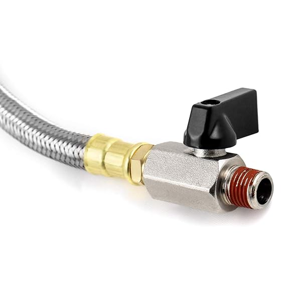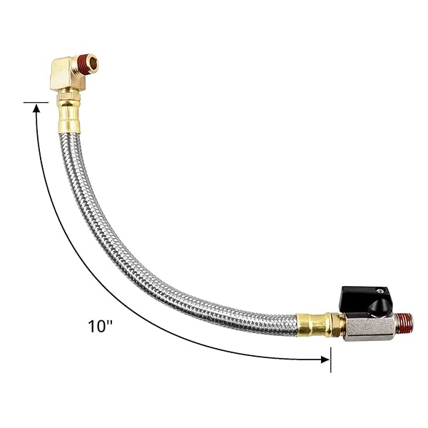 * QWORK Extended Tank Drain Valve Assembly Kit for Air Compressor, Including 10 Inches Air Compressor Tank Drain Hose 1/4 inch NPT, 1/4" to 3/8" Brass Adapter and Thread Seal Tape: high quality * Made of high quality braided steel with brass head * This kit is durable * Rust and corrosive resistant * Specification