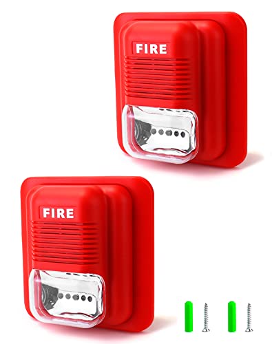 QWORK Fire Alarm, 2 Pack 12 24V DC Wired Sound and Light Fire Alarm Warning Strobe Siren Horn, Sound Alarm Security System Sensor, WD8912