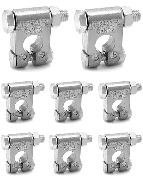 - QWORK Military Spec Battery Terminals, 4 Pairs Negative and Positive Top Post Battery Connector for Marine Vehicles, Boats, RVs with reliable performance and quality- Function: For replacing worn or corroded battery terminals and covers.- Positive & Negative: Marked for positive and negative terminals (19 mm tapering positive & 17 mm tapering negative).- Size: Standard 3/8" diameter bolts for lug mounting, also includes a short 5/16" diameter bolt.- Design: Ea