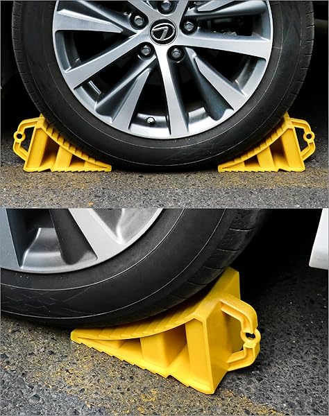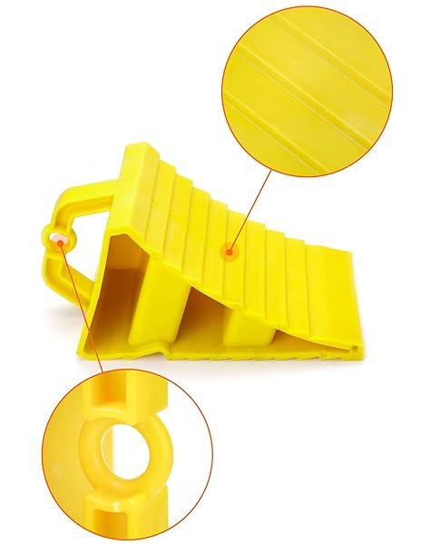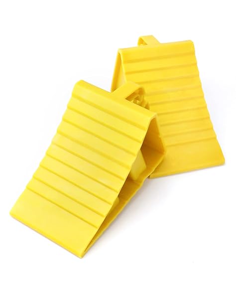 - QWORK RV Wheel Chocks, 4 Pack Heavy Duty Car RV Tire Chocks Camper Chocks with Handle and Rope, Car Truck Stopper for Travel Trailers, Camper, Cars, Truck, Yellow with reliable performance and quality- High Quality: Made of premium PP material, with high hardness, the wheel chocks are lightweight, sturdy, not easy to break, and can hold heavy load.- Safe Design: With specially designed triangular structure, it can be fixed on uneven roads and slippery terrain, overcome grav