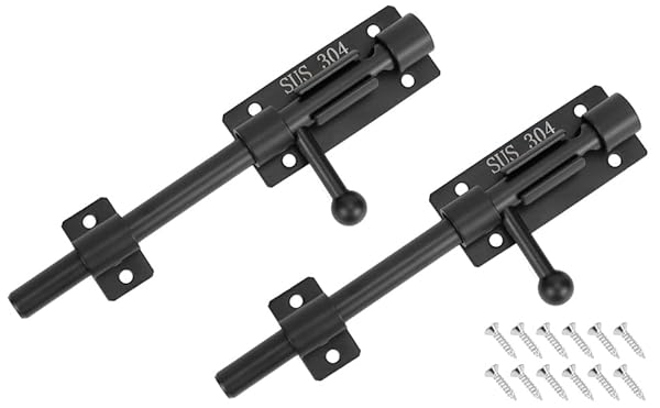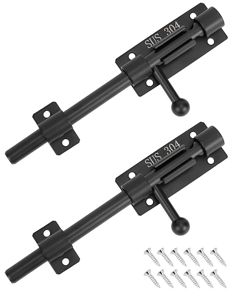 - QWORK Sliding Bolt Gate Latch, 2 Sets Heavy Duty 304 Stainless Steel Safety Barrel Bolt Door Latches with Padlock Hole and Mounting Screws for Doors, Cabinets, Refrigerators, Black with reliable performance and quality- Premium Quality: Crafted from durable 2.4mm thick 304 stainless steel, this sliding bolt gate latch ensures exceptional strength and longevity, providing superior security for your doors, chests, gates, and cabinets.- Widely used: Designed for security appli