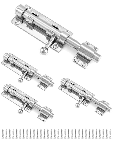 - QWORK Sliding Bolt Gate Latch, 4 Pack 6.3" Heavy Duty 304 Stainless Steel Safety Barrel Bolt Door Latches with Padlock Hole and Mounting Screws for Doors, Cabinets, Refrigerators with reliable performance and quality- Premium Quality: Crafted from durable 2.4mm thick 304 stainless steel, this sliding bolt gate latch ensures exceptional strength and longevity, providing superior security for your doors, chests, gates, and cabinets.- Widely used: Designed for security applica