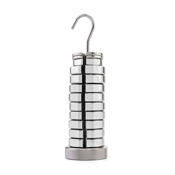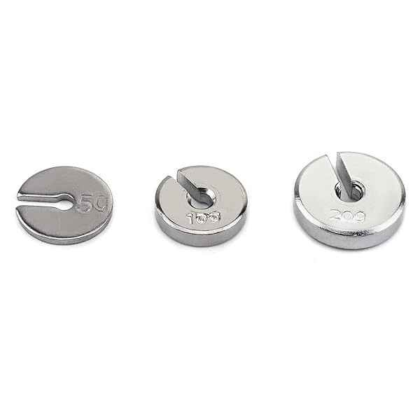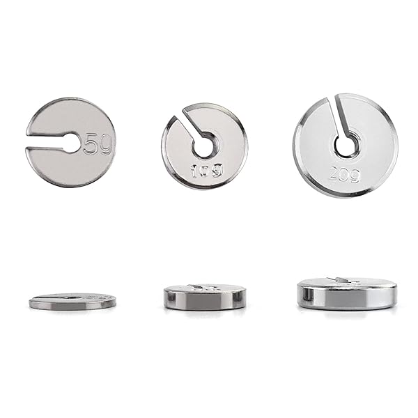* QWORK Slotted Weight Set, 13 Weights with Hanger and Case: well built: made of premium steel plated with chrome * Metric Weights: Set of metric slotted weights for weighing operations * Set: Includes one 50g * Nine 20g * One 10g