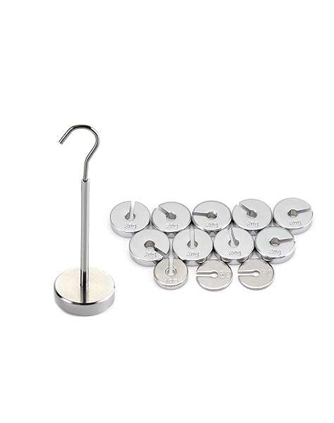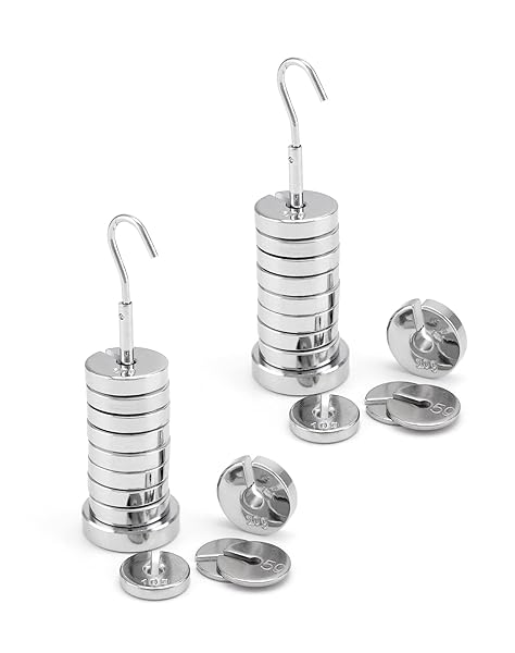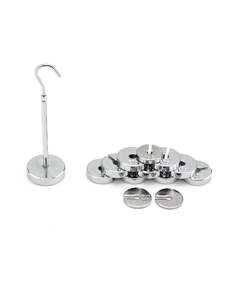 * QWORK Slotted Weight Set, 2 Set of 13 Weights with Hanger and Case, 250g Per Set: well built: made of premium steel plated with chrome * Metric Weights: Set of metric slotted weights for weighing operations * One Set: Includes one 50g * Nine 20g * One 10g