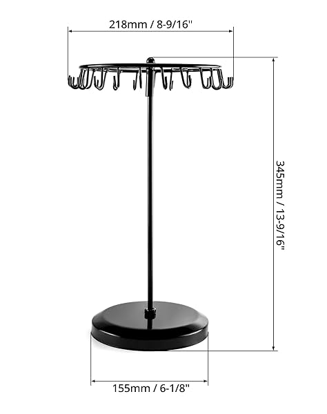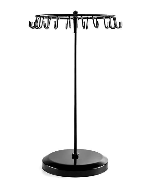 * QWORK Spinning Jewelry Tree Display Stand, Jewelry Organizer with 23 Hooks, Black: durable: full metal construction * Sturdy and durable to use * Size: 7 7/8" W x 13 3/8" H * 23 hooks * Black