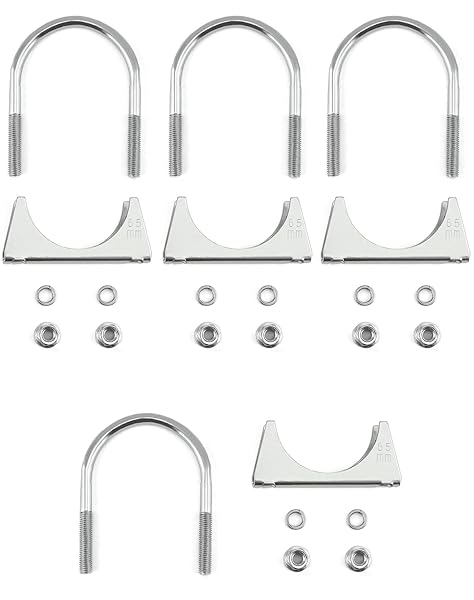 - QWORK Stainless Steel U-Bolt Muffler/Exhaust Clamp (2.5" Diameter), 4 Pack U-Bolt Muffler Tip Exhaust Hook with reliable performance and quality- Durable Construction: It made from premium carbon steel with a galvanized surface that offers robust resistance against heat and corrosion, ensure your exhaust pipes stay securely in place, making your driving experience smoother and more enjoyable.- Size: 2-1/2 in. ID, fits 2-1/2 in. OD pipe, 4 piece universal muffler tip exhaust