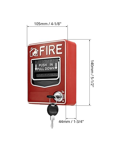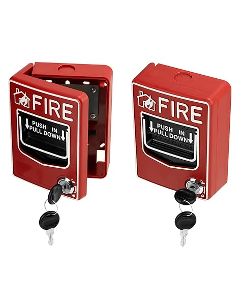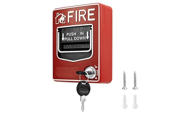 - QWORK Wired Emergency Fire Alarm Station, Dual Action Manual Call Point Fire Alarm Panic Button 9-28VDC with 2 Keys with reliable performance and quality- Manual Call Point: Dual Action Manual Call Point Fire Alarm Panic Button Designed for traditional fire alarm systems to report a fire or emergency with its push/pull handle latch.- Easy to Operate: Dual action pull station with key lock, come with 2 keys. Attached with installation instructions.- Open Alarm Switch: