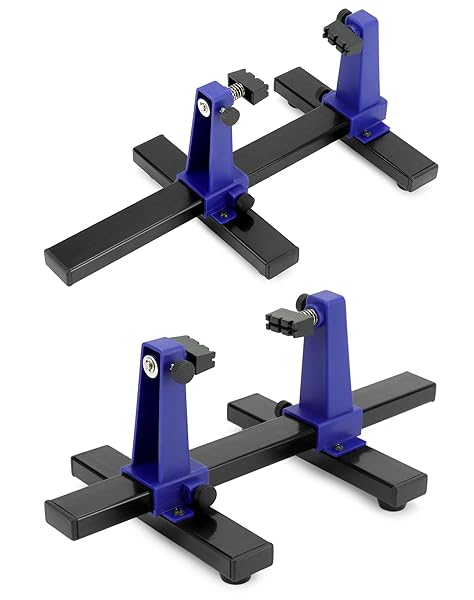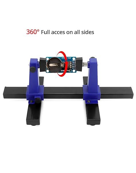 - QWORK Adjustable Printed Circuit Board Holder Frame, PCB Holder Frame and Clamping Kit, 1 Set with reliable performance and quality- 360 Degree Rotation: The clip rotates 360 degrees for easy access to all sides of an object, easy to flip the board.- Fixed Objects: Board holder (PCB) holds objects in place for soldering, repair or inspection functions.- Rubber Feet: There are 4 rubber feet under the base to creates a sturdy and safe work platform.- Adjustable: