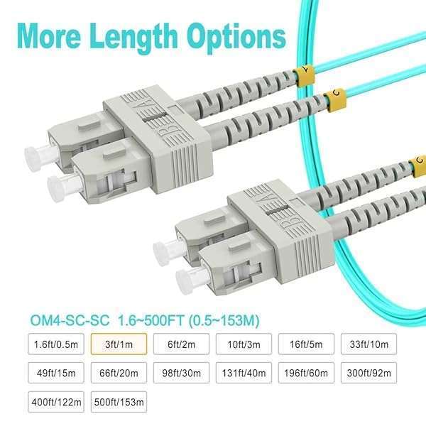 1m(3ft) OM4 SC SC Fiber Patch Cables MMF Multimode, Options 1m~153m, SC to SC Fiber Optic Cable Duplex, 50/125?m 40G/100G LSZH, RamboCables