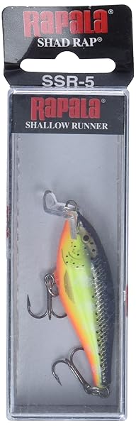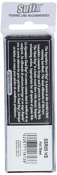 - Rapala Shallow Shad Rap 05 Fishing lure, 2.5-Inch, Hot Steel offers reliable performance and quality- Balsa wood construction under incredible finishes make this the lure big fish find irresistible- Shallow Running Lip Design- Classic Rapala "wounded-minnow" wobble- Built tough with hard-diving lips and sharp treble hooks, these legendary lures have the power to survive even the toughest fights