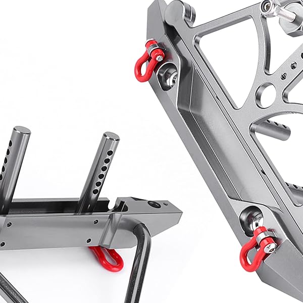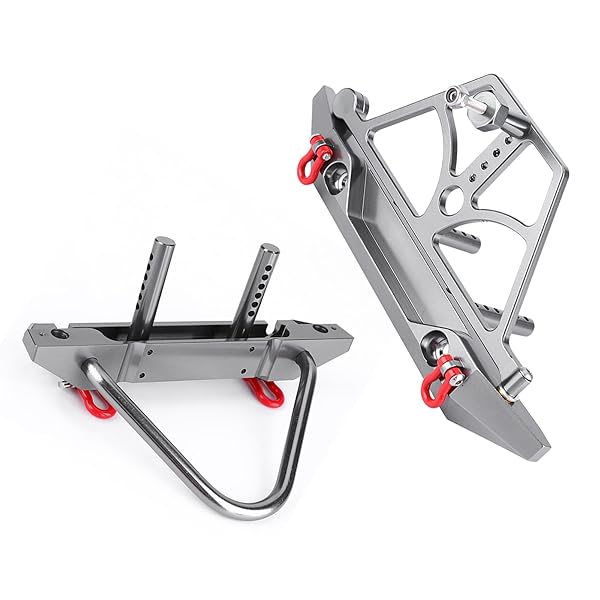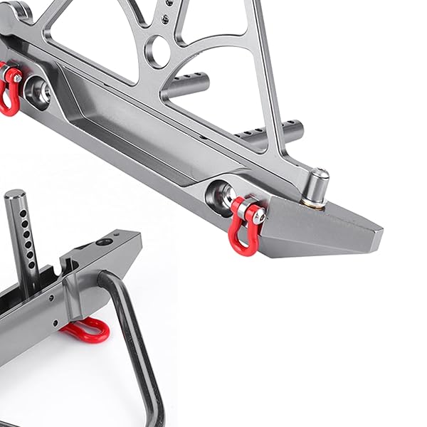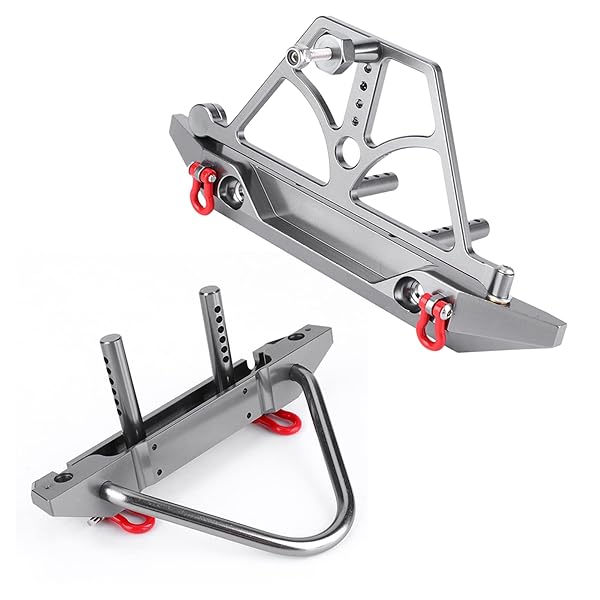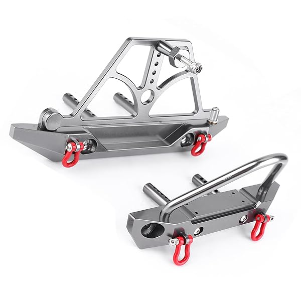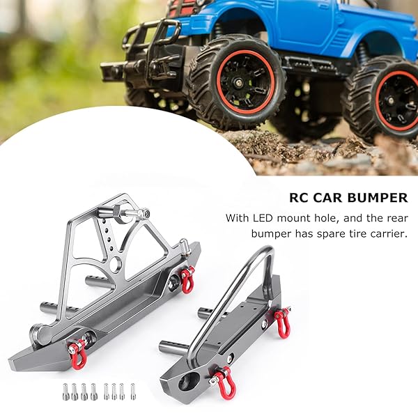 * RC Crawler Bumper, CNC Racing Metal Front Rear Bumper Set with Spare Tire Carrier fit for Axial SCX10 SCX10 II: features: * MOUNTING DESIGN:The RC Bumper has LED mounting holes and the rear bumper has a spare tire carrier design * SUPERIOR MATERIAL:This bumper is made of fine metal materials with high strength and durability * It is wear-resistant * Crash-resistant