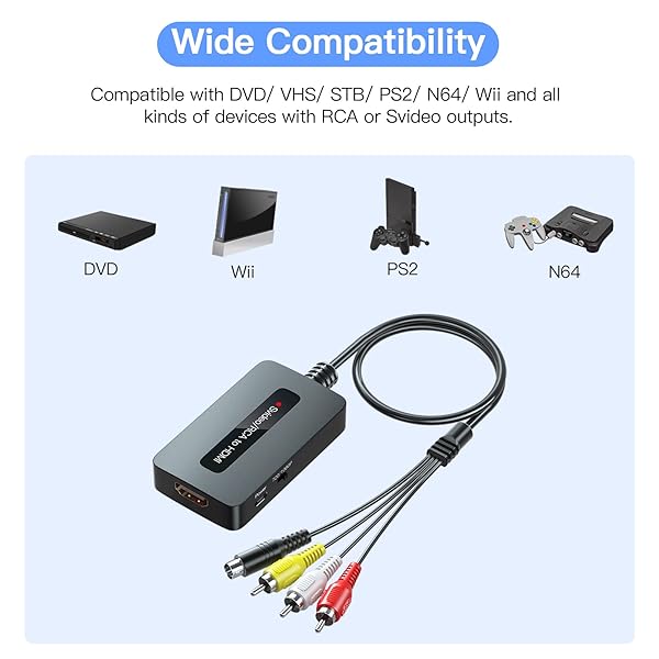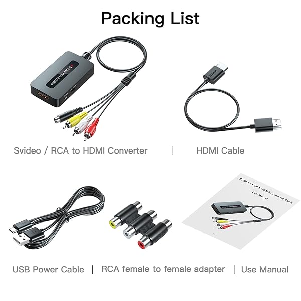 - Sedytetoc RCA Svideo to HDMI Converter with HD Cable(RCA and Svideo Integrated), CVBS Composite AV to HDMI Converter provides reliable performance and quality- RCA Svideo to HDMI Converter This RCA S-video to HDMI converter comes with HDMI cable and integarted RCA & Svideo cables. No need to purchase extra cables separately. Plug the included power cable ...