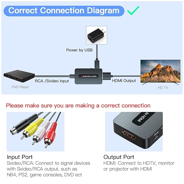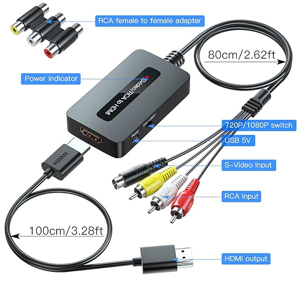 RCA S-Video to HDMI Converter with Cable - CVBS Composite AV to HDMI Adapter