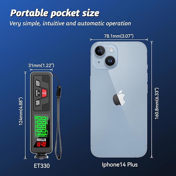 - Car Coating Thickness Meter for Used Car Buyers, Paint Mil Thickness Meter Gauge Check The Cars Original Coating Auto Car Paint Meter (ET330) with reliable performance and quality- Used Car Purchases-Save Your Money: Used for non-destructive measurement of automotive paint thickness, it helps inspect the car's paint to determine if it has been in an accident or repainted before when buying a used car, revealing hidden damages and providing significant cost savings for buyers<