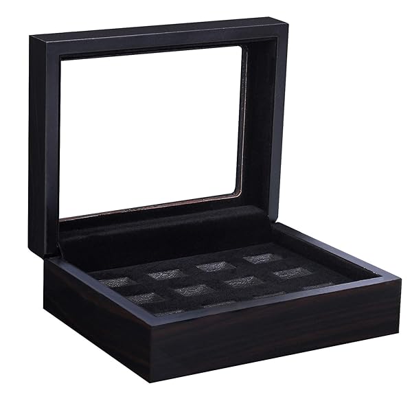 - RECHIATO 12 Slots Championship Ring Display Case Display Case for Sports Rings baseball Ring display Wooden Box (12 Slots, Flat, Black): reliable performance and quality- Wooden ring display box Champion Ring Display case black sports ring- Wooden ring display box featured with a see through lid to show off- The inside of the jewelry case compartment slots is lined with velvet- Notice: This ring display box is designed to storage sports champion