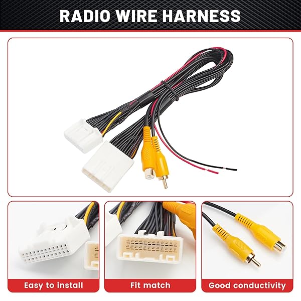 RED WOLF 24 PINS Backup Camera T-Harness for 2014-2019 Toyota 4Runner Tacoma Highlander Sienna Aftermarket Reverse Camera Integration