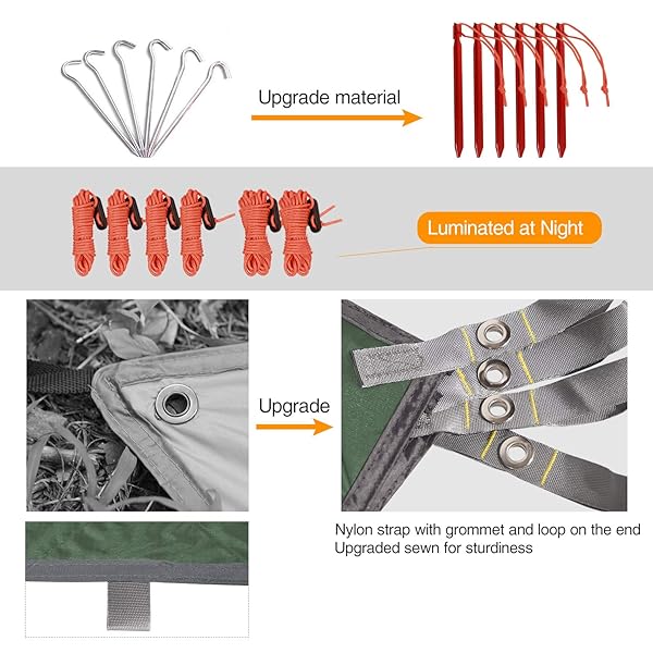 REDCAMP Hammock Rain Fly Camping Tarp Waterproof, 10x10ft Lightweight Backpacking Rain Tarp Shelter for Hiking Outdoor, Green