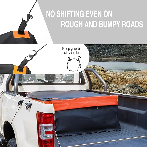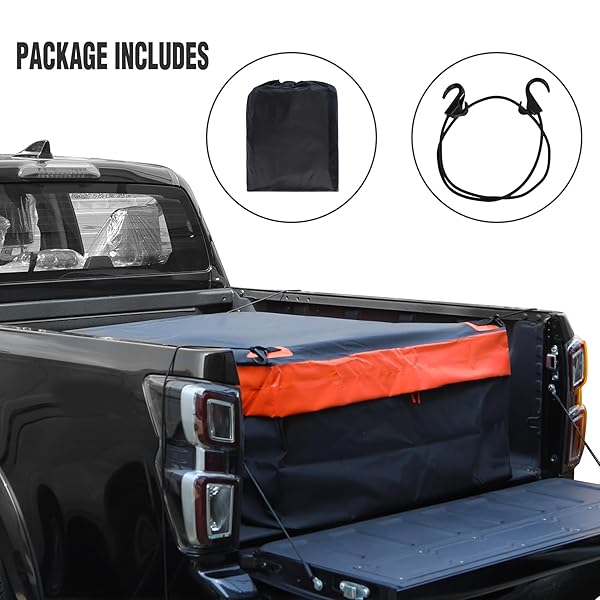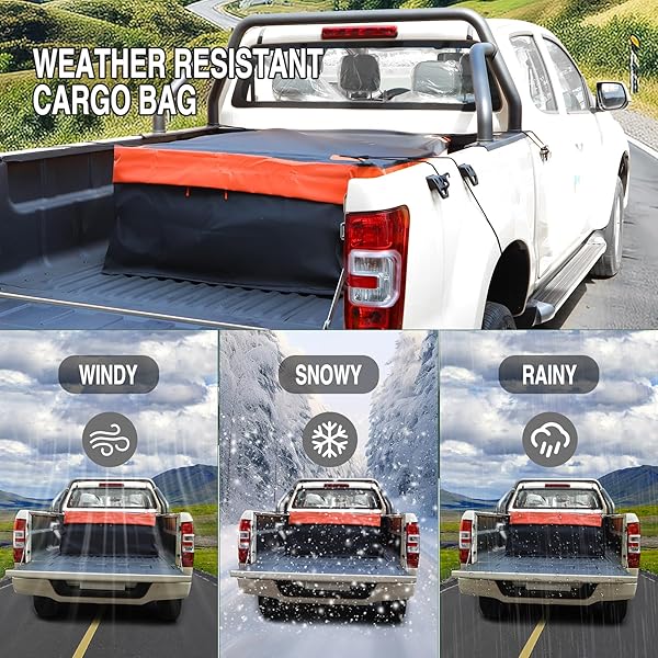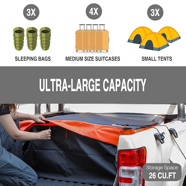 - REDCAMP 26 Cubic ft Truck Bed Cargo Bag, Extra Waterproof Cargo Bag, Fits Any Truck Size, Heavy Duty Luggage Bag with 4 Bungee Cords for Pickup SUV, 50x40x17 with reliable performance and quality- Waterproof and Weather-resistant: This truck cargo bag is constructed with durable waterproof sandwich fabric PVC. The zipper, equipped with an extra velcro cover, effectively seals out rain and protects the bag from adverse weather conditions- Spacious Storage Space: This waterpr