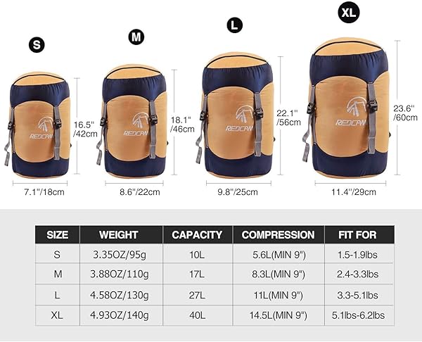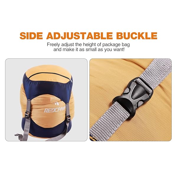 - REDCAMP Nylon Compression Stuff Sack, Lightweight Sleeping Bag Compression Sack Great for Backpacking, Hiking and Camping, Orange M offers reliable performance and quality- Superior Material: Our compression stuff sack is made of light weight Nylon material, high quality, water resistant, durable fabric and steady for longer lifespan. Weights only 110g