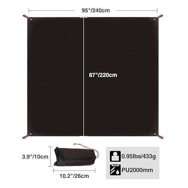 - REDCAMP Ultralight Tent Footprint, PU 2000 Waterproof Camping Tent Tarp with Drawstring Carrying Bag for Ground Camping Hiking (95"x87" UL Black) offers reliable performance and quality- DURABLE: REDCAMP waterproof tarp is made from 210T ripstop polyester fabric that is waterproof (PU2000mm)- LARGE: 240cmx220cm/95''x87", perfect for 4-5 person. You can place the camp ground cloth under your tent to provide an extra moisture layer