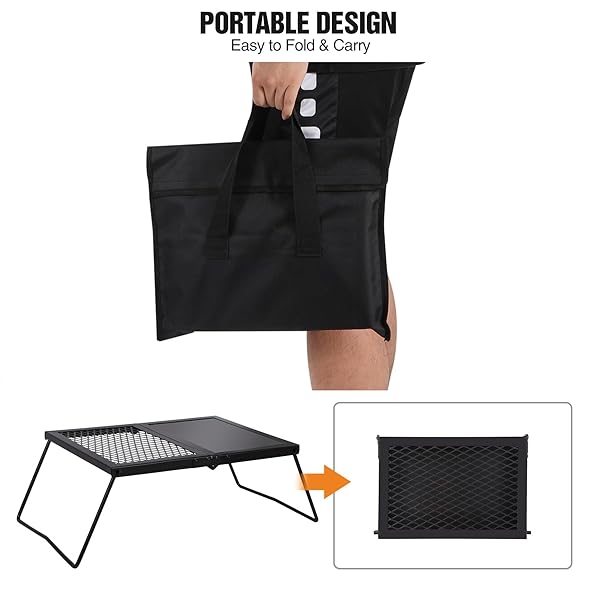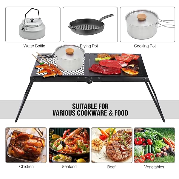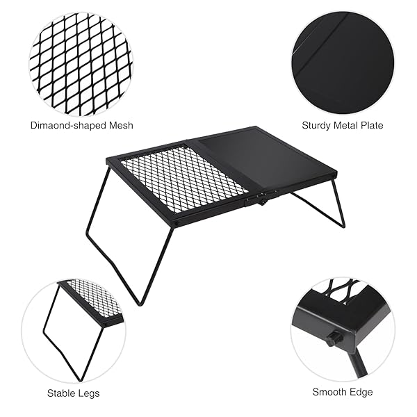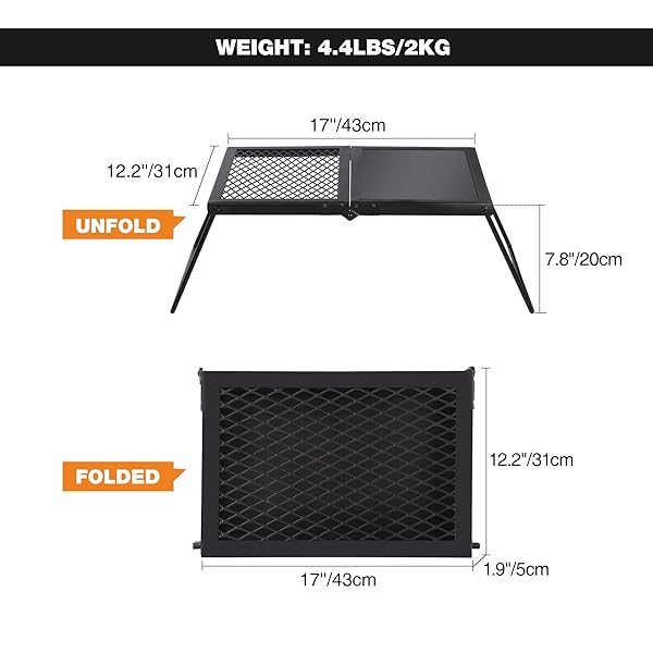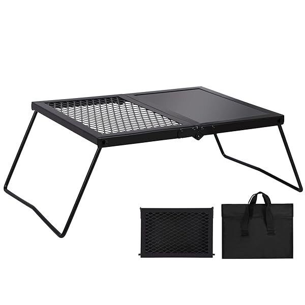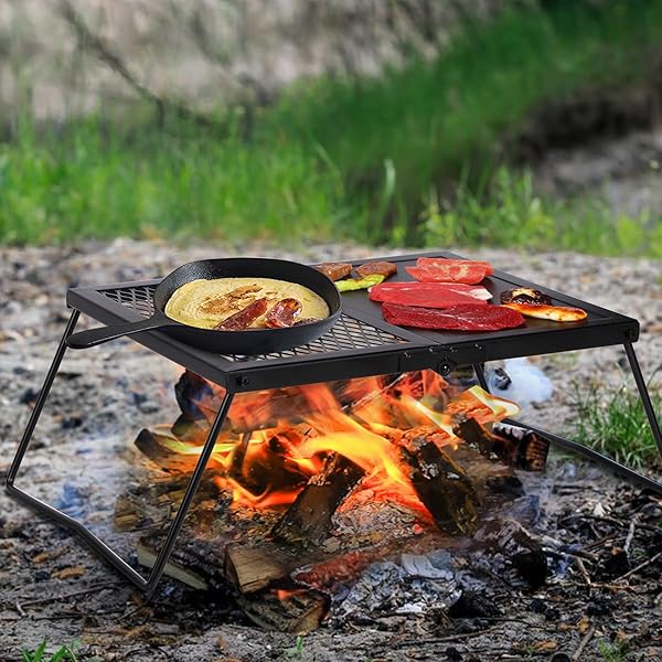 - REDCAMP Folding Campfire Grill Heavy Duty Steel Grate, Portable Camp Fire Cooking Racks and Griddle for Outdoor Versatile Campfire Cooking with reliable performance and quality- Durable & Stable: The grill grate is made of high quality iron material, which is durable and corrosion resistant. The curved legs make the structure stable enough when open to use, easy to set up in seconds.- Dimensions: The open size of the camping grill grate is 13.8''x7.5''x11.4''/35x19x29cm. Th