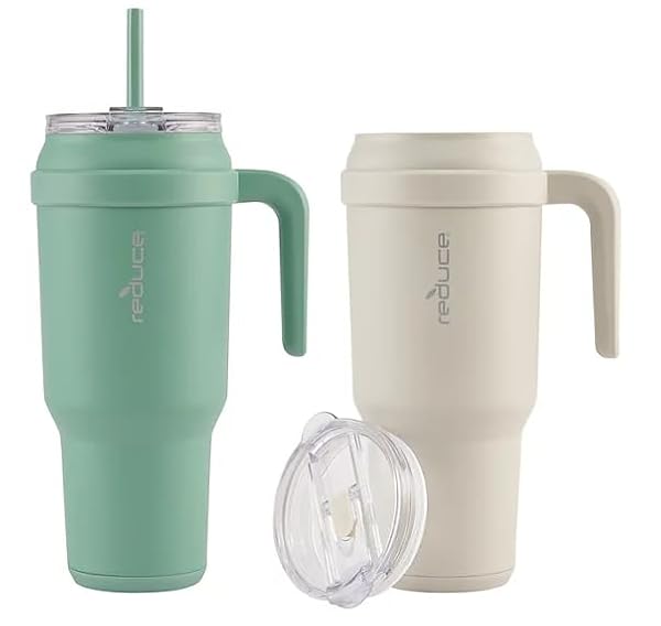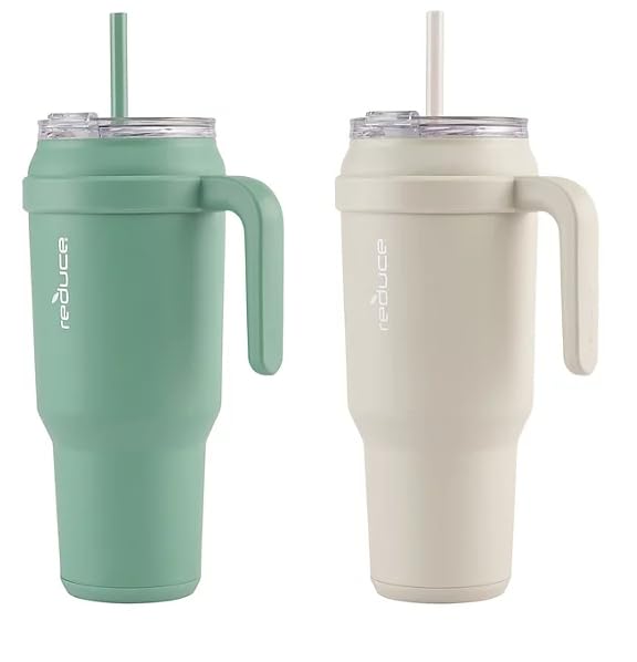 - REDUCE 50 oz Mug Tumbler with Handle & Straw - Stainless Steel with Sip-It-Your-Way Lid - Keeps Water Cold up to 50 Hours - SweatProof, Dishwasher Safe, BPA Free - 2 Pack, Green / Beige offers reliable performance and quality- Item Weight: 1.48 pounds- Unit Count: 50.0- High performance for daily use- Durable construction and reliable quality