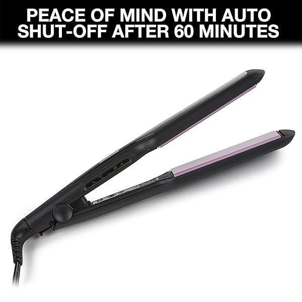 * Remington 1 3/4" Flat Iron, Hair Straightener with Anti-Static Technology, 30-Second Heat Up & 60 Minute Auto Shut-off, 30% Longer Ceramic Floating Plates, Titanium + Ceramic Coating: color:purple boost your styling control with the remington 1 " anti-static flat iron * Anti-Static Technology reduces the amount of negatively charged particles during styling for 50% less static and fly aways * The ceramic plates with titanium protection coating heat up fast to create a smooth glide * The 1 "