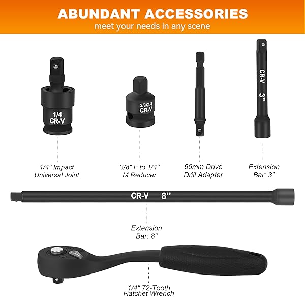 - Reniteco 56-Piece 1/4" Drive Socket Set, SAE (5/32"-9/16") & Metric (4mm-15mm), Deep & Shallow, 72-Tooth Ratchet Wrench, Extension Bars, 3/8" F to 1/4" M Reducer, Universal Joint & Power Drill Adapter offers reliable performance and quality