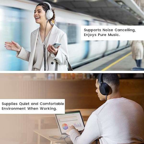 Replacement Coiled Aux Cord for Sony WH-1000XM5, WH-CH720N, MDR-950BT - 14ft with 6.35mm Adapter