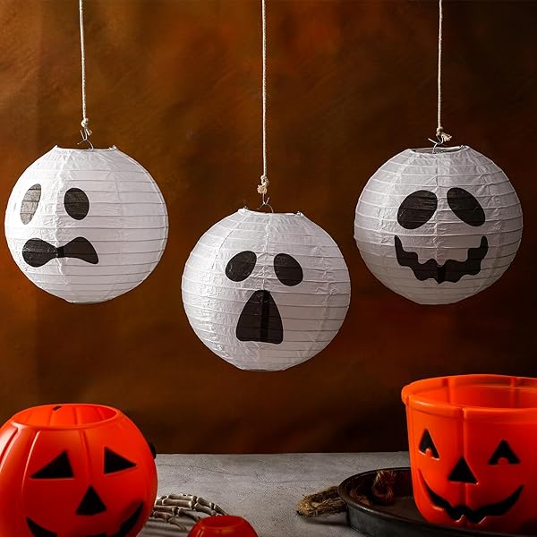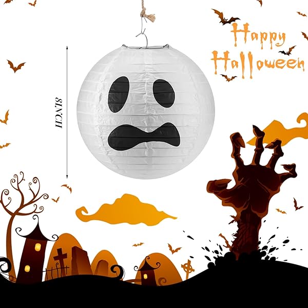 - Retisee 12 Pcs Halloween Paper Lanterns Ghost Lanterns 8 Inch Round Hanging Lanterns for Halloween Party Decorations for Indoor Outdoor Supplies, 3 Styles(White) offers reliable performance and quality