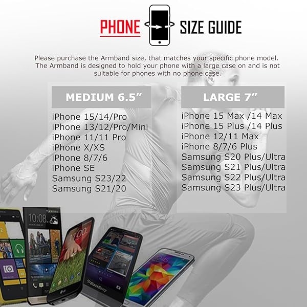 * RevereSport Waterproof Running Armband for Phone with Case On (Otterbox, Lifeproof). Sports Phone Holder Compatible iPhone 17/16/15/14/13/12/11/SE Samsung S25/S24/S23/S22/S21/S20 (Medium): keep your phone case on!!! * This is the most secure armband on the market * Designed to hold your phone so you don't even notice you have it with you * The lightweight material creates a snug No Bounce extra secure fit!! The running armband will hold your phone securely allowing you to access apps * Listen