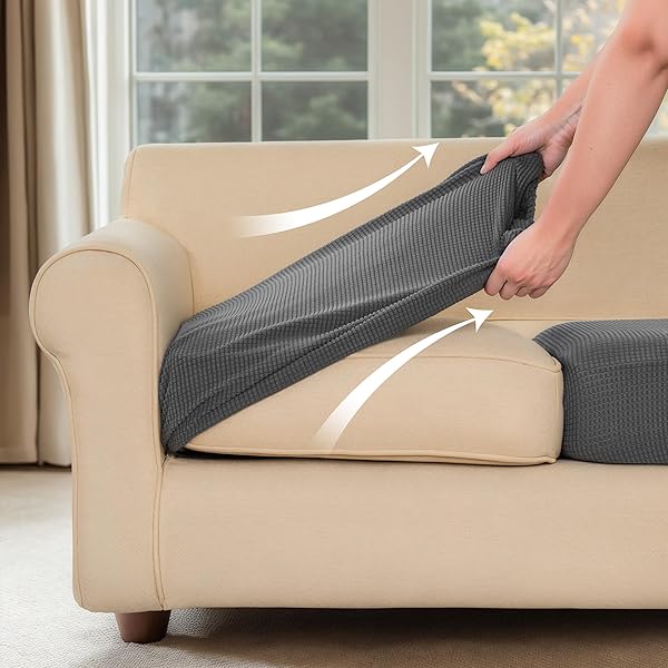 Reversible Hokway Stretch Couch Cushion Slipcovers - Gray Sofa Protector Covers (Small) for Ultimate Comfort