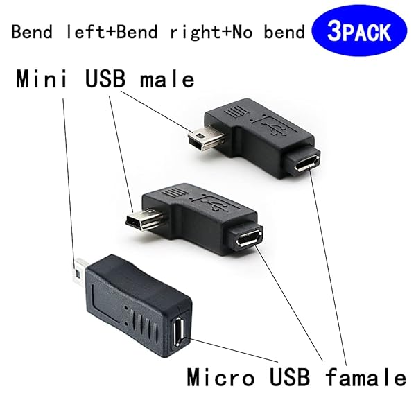 * rgzhihuifz 90 Degree Left & Right Angle Mini USB Male to Micro USB Female Connector Adapter 3-Pack: left and right angle micro to micro * Male to female * 5 pin micro male to female adapter * Easy to use * Plug and play