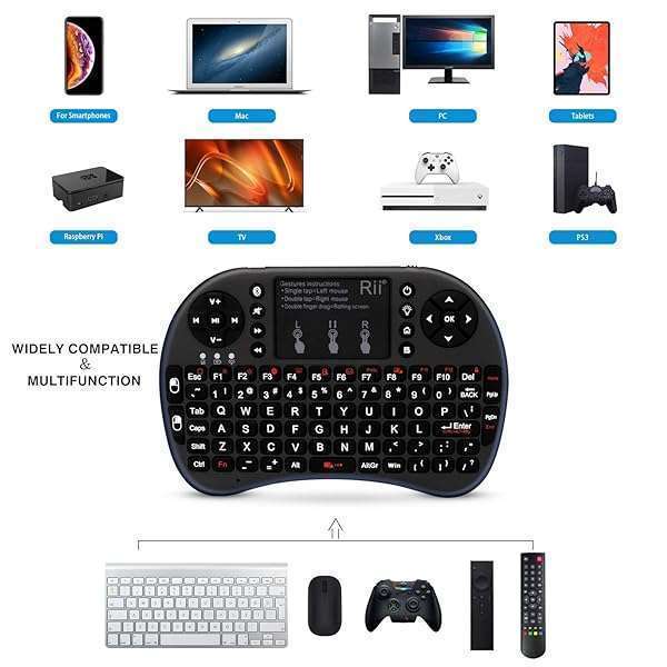 - Rii i8 Mini Bluetooth Keyboard with TouchpadQWERTY Keyboard, Portable Wireless Keyboard with Remote Control for Smartphones /laptop/PC/Tablets/ Windows/Mac/ TV/Xbox/PS3/Raspberry Pi .Black provides...- This is a wonderful combo, Bluetooth 4.0 Mini Wireless QWERTY keyboard with TouchPad and USB interface adapter- 92 keys, Built-in high sensitive smart touchpad with 360-degree flip design