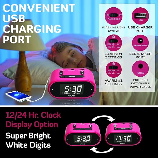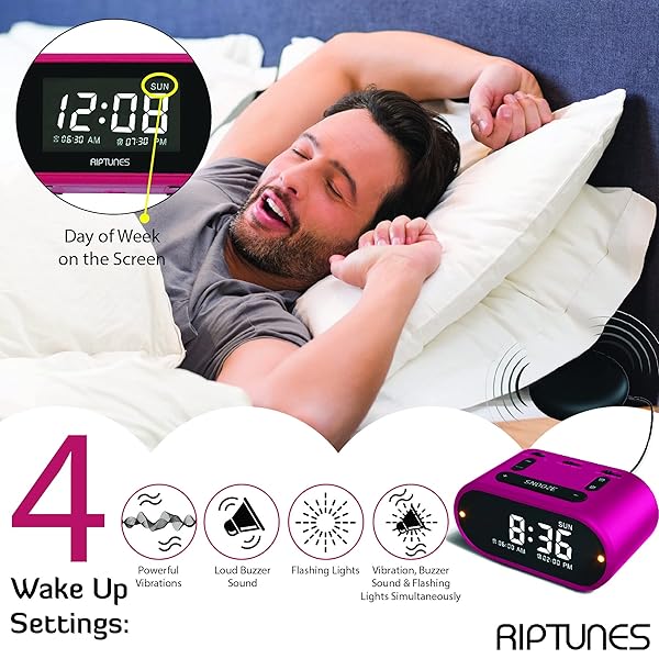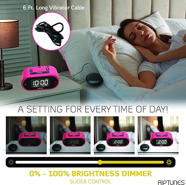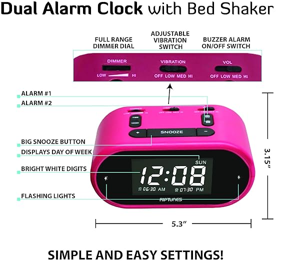- Riptunes Loud Alarm Clock with Bed Shaker for Heavy Sleepers & Hearing Impaired - Dual Alarm for Bedroom Weekday and Weekend Settings USB Charging, Dimmer, Snooze: reliable performance and quality- VIBRATING 3 IN 1 ALARM CLOCK this is exactly what you- LOUD ALARM & STRONG BED SHAKER 3 Volume level adjust- Digital Clock with DUAL ALARM & CUSTOMIZE ALARM FOR- EASY TO SETUP with LARGE DISPLAY and FULL RANGE DIMMER