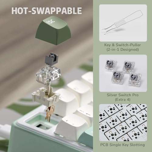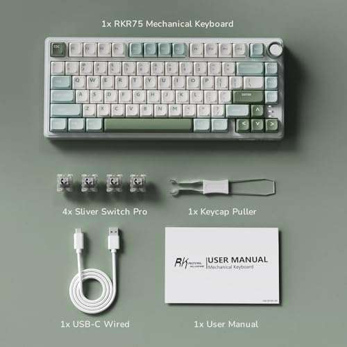 * RK ROYAL KLUDGE R75 Mechanical Keyboard Wired with Volume Knob, 75% Keyboard Gasket Mounted, Hot Swappable, Creamy Sound, MDA Profile, PBT Keycaps: 75% percent mechanical keyboard wired * Compact gaming keyboard saves valuable desk space while keeping essential arrow keys for both gaming and productivity * Featuring a premium aluminum CNC volume knob * It lets you adjust audio effortlessly at your fingertips * It also supports N-key rollover and a WIN key lock to prevent accidental