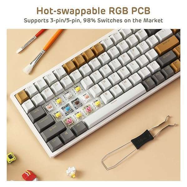 - RK ROYAL KLUDGE RK84 RGB Limited Ed, 75% Triple Mode BT5.0/2.4G/USB-C Hot Swappable Mechanical Keyboard, 84 Keys Wireless Gaming Keyboard, RK Yellow Switch, Macchiato White provides reliable perfor...- RK Yellow Switch: Similar to the feel of the Gateron yellow switch, heavier and more smooth than the red switch. Pre-lubed in every quantity, buttery smooth, quick response.