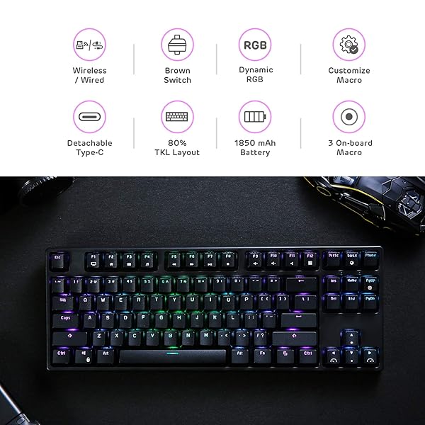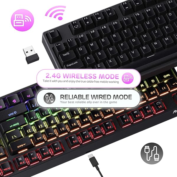 - RK ROYAL KLUDGE RK87 Sink87G RGB 80% Mechanical Keyboard, Wireless 2.4G Tenkeyless Mechanical Keyboard with Programmable Software, 87 Keys, Tactile Brown Switches offers reliable performance and quality- Wireless Mexhanical Keyboard - Simply insert the nano USB receiver into your PC and use the keyboard instantly. Choose wired or wireless mode from the switch at the bottom of the keyboard