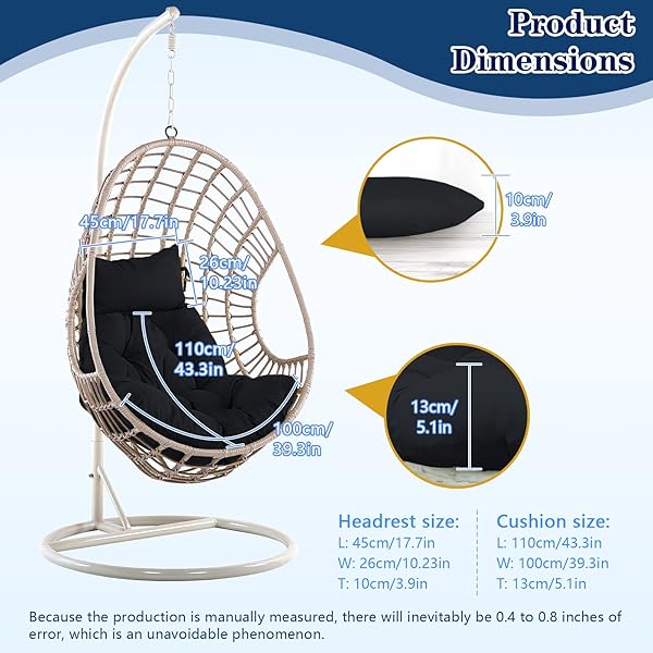 - Rkufoze Hanging Egg Chair Cushion, Soft U-Shaped Cushions for Swing Chair (Only Cushion) offers reliable performance and quality- Tips: The hanging egg chair cushion is delivered in vacuum compressed package. Please patiently place it for 3-7 days, or put it in the dryer for 15 minutes to restore its original shape- High-quality stuffing: The cushion of the egg chair is thick, soft and comfortable, which is the perfect match for your courtyard and bedroom