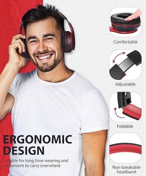 * rockpapa E7 Over Ear Wireless Bluetooth Headphones with Mic, Foldable Wired/Wireless Headphones with Microphone for Kids Childrens Boys Girls Teen Youth Adult Black Red: [ stereo bluetooth headphones ] : built-in 40mm audio driver to ensure rich bass and crisp midrange which provides excellent sound performance * Also Bluetooth 5.3 chip which provide lower latency and more stable transmission speed * This Rockpapa wireless headphones will bring you the most perfect listening experience * Its
